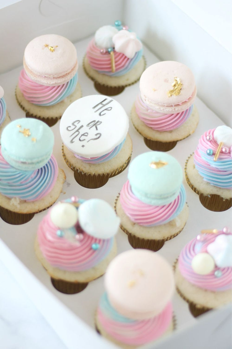 Celebrate the surprise with one of our Gender Reveal cupcake boxes!