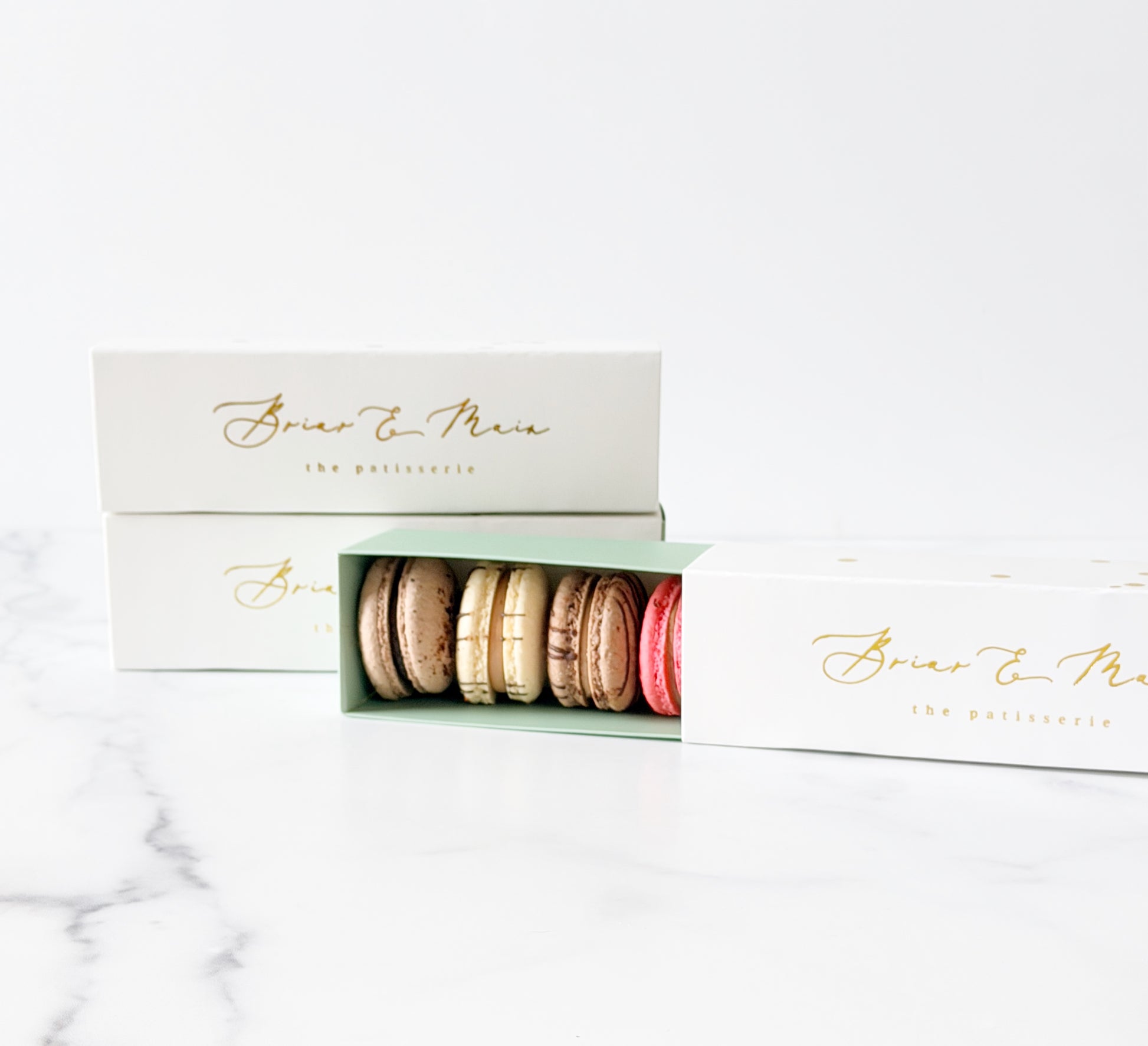 At Briar & Main, our signature macarons are a little bite of magic—crisp on the outside, soft and fluffy inside, and filled with the most delightful house-made fillings: silky ganache, whipped batters, flavored buttercreams, and more. Every batch is handcrafted with care and just the right amount of whimsy.