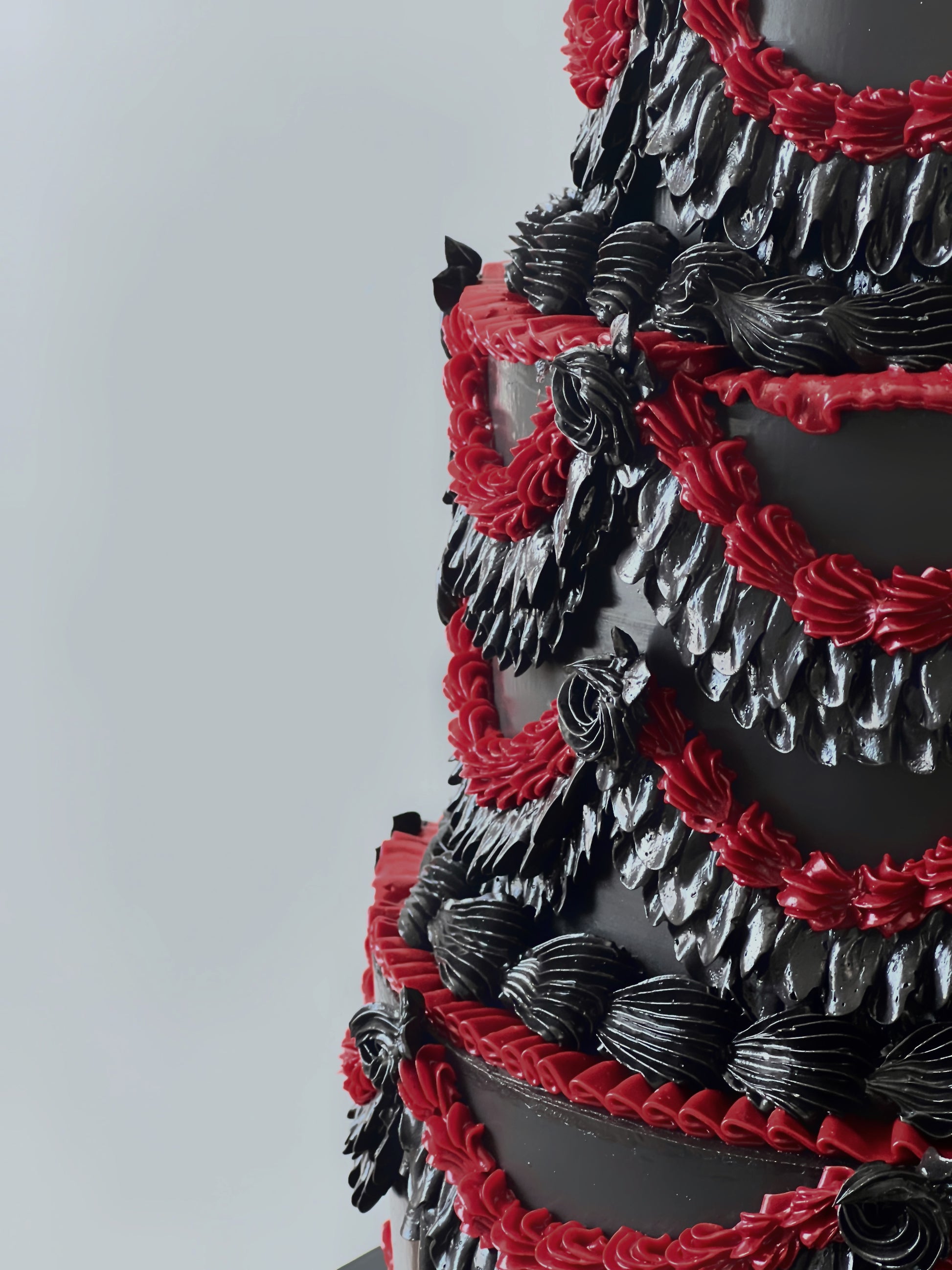 Meet Victoria – A vintage-inspired centerpiece that’s as unforgettable as the celebration itself. This two-tier hand-piped beauty features delicate buttercream ruffles, accented with buttercream swags and satin-style bows for a showstopping look. Every detail is crafted with care, blending timeless elegance with a hint of playful romance.